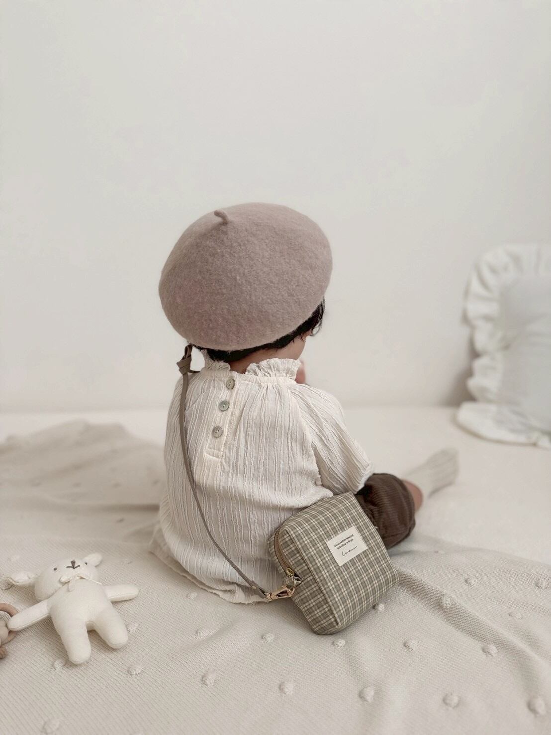 肩紐調節無し、小さなお子様は紐を結んでの着用
