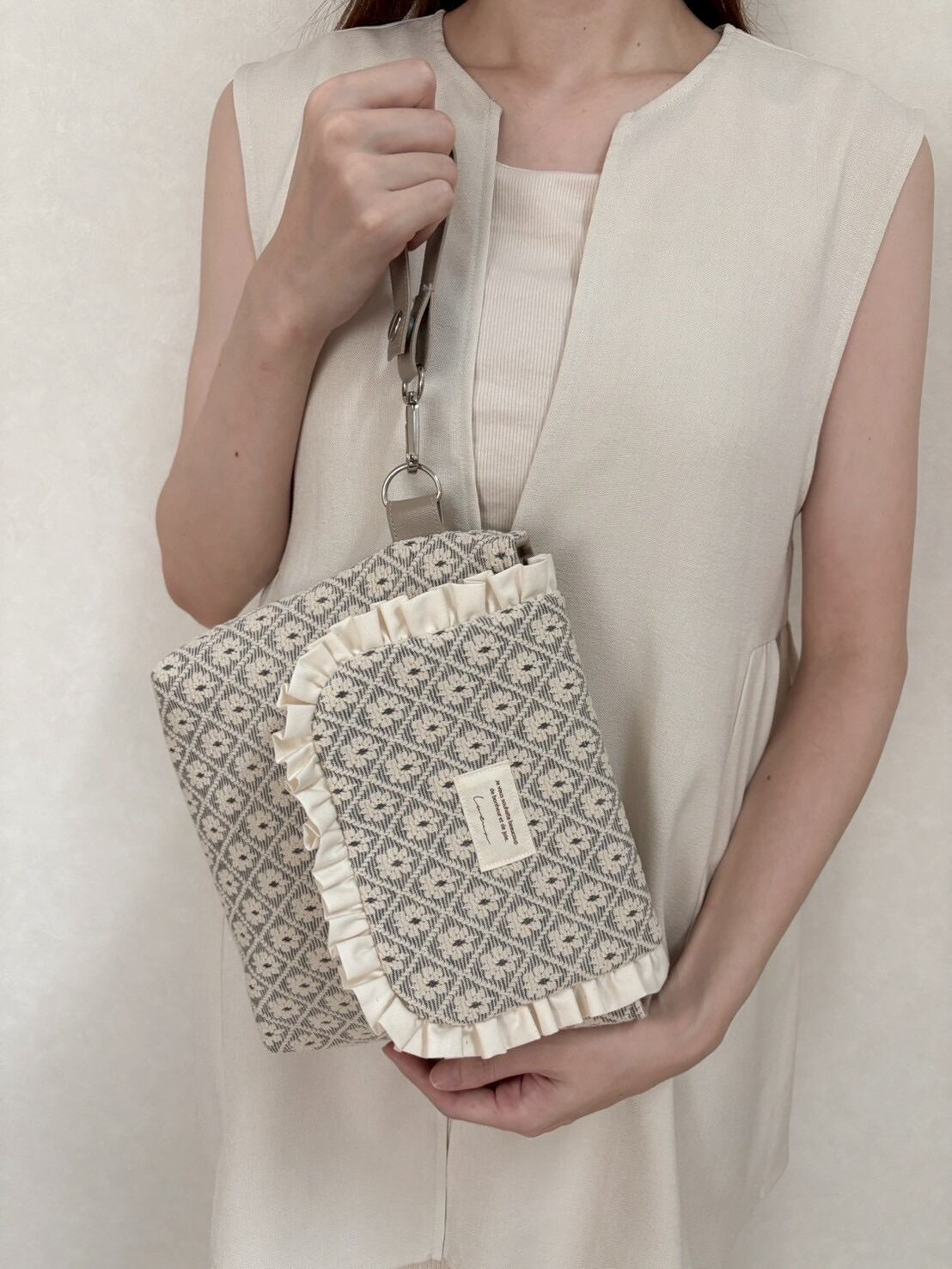 大きすぎず小さすぎずちょうどいいサイズに仕上がってるので日帰りやちょっとしたお出かけ時に便利なポーチになってます。