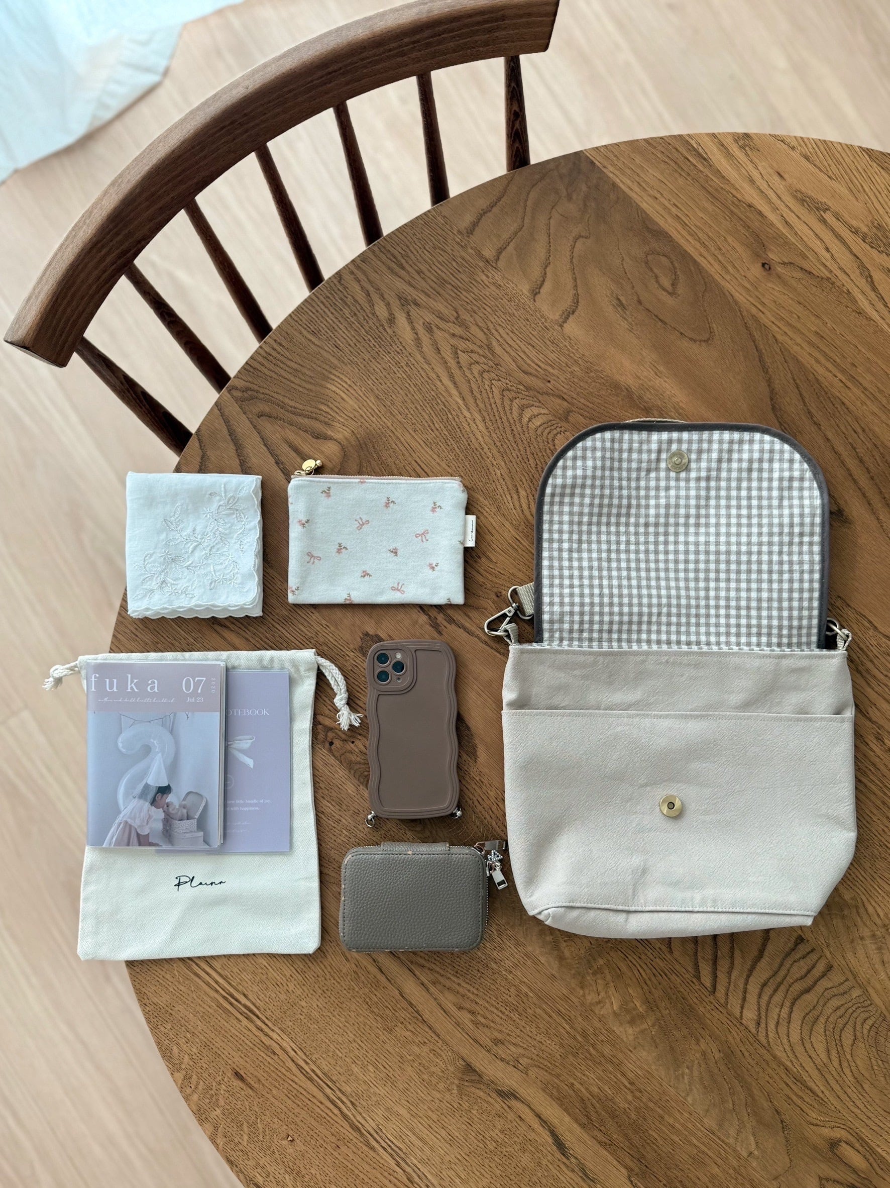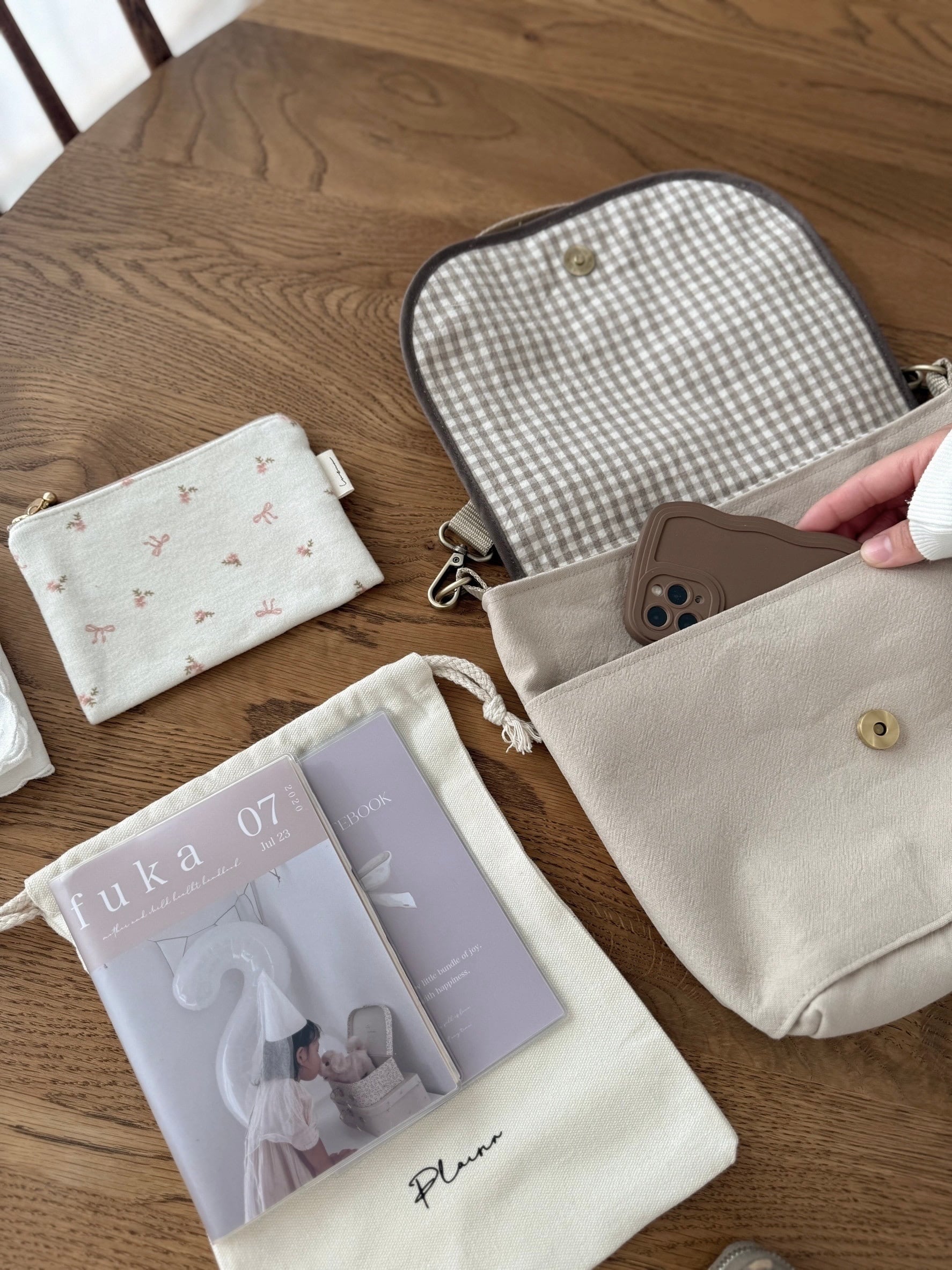 中はナチュラルなチェック柄で可愛さも取り入れ、表も裏も韓国生地の贅沢使い♩