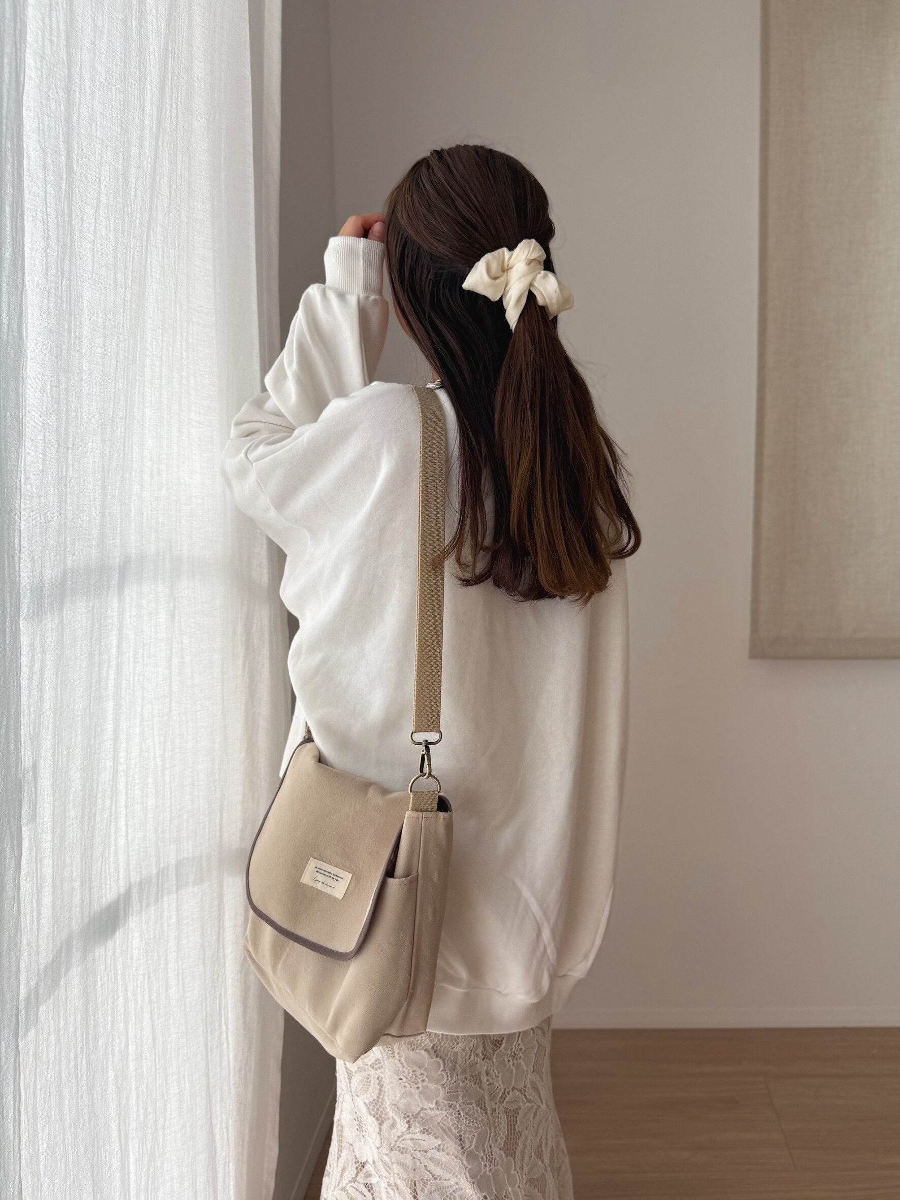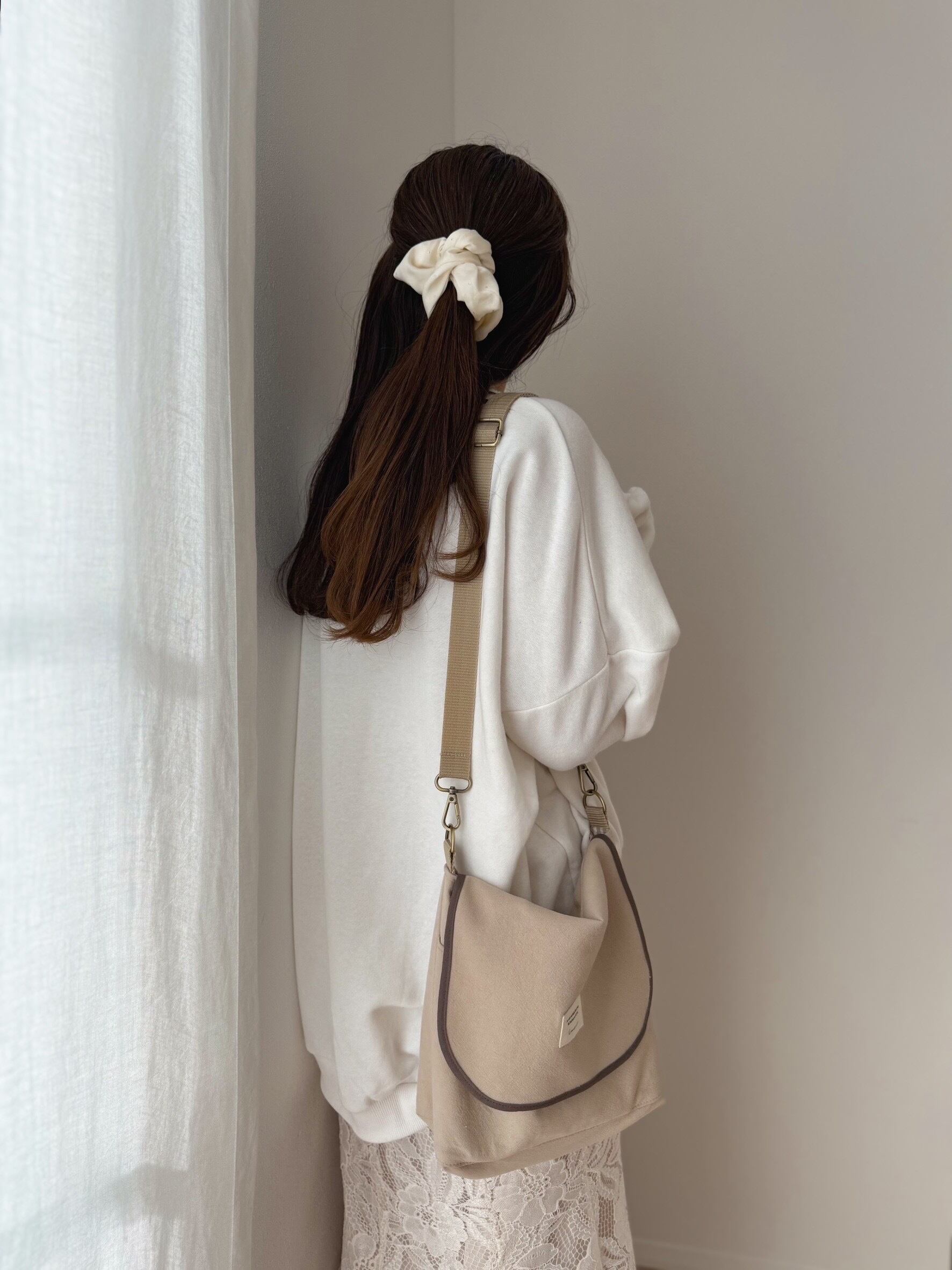 シンプルでお洋服にも合わせやすく、生地表面のシボ感がとても可愛くおすすめポイントの一つ